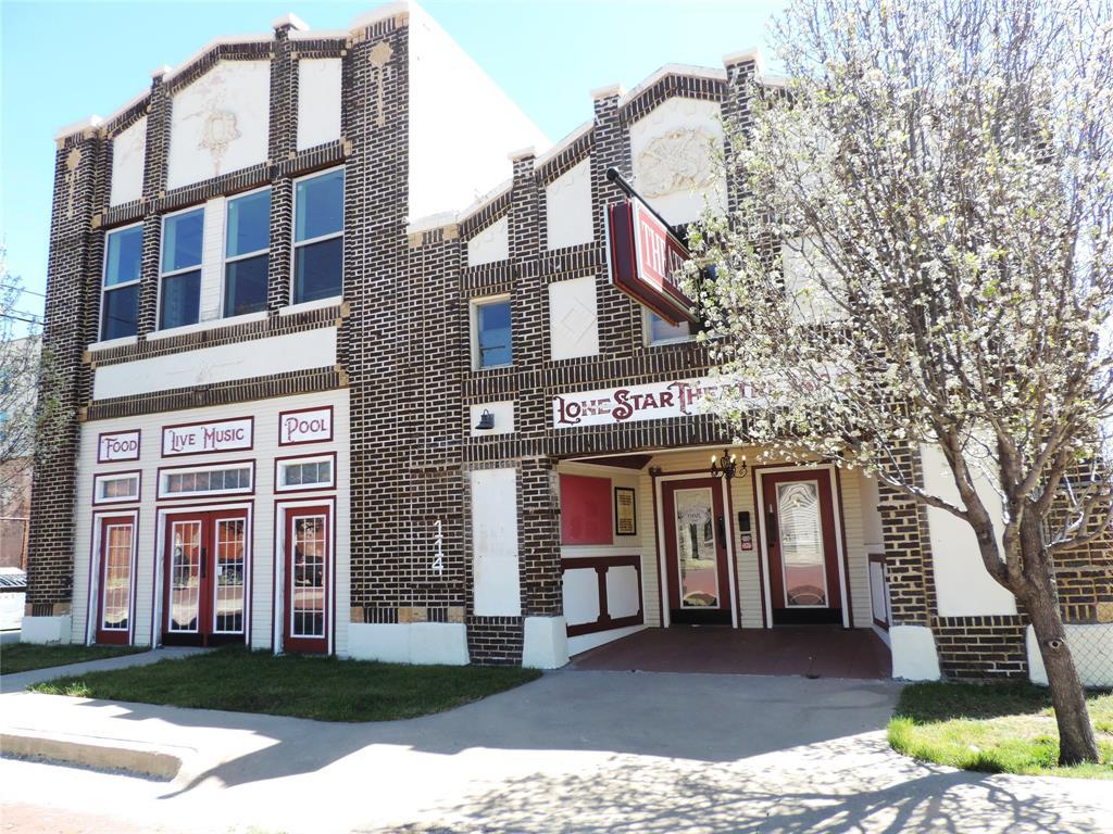 Here is your chance to own and revive a piece of legendary history! This historical building in Ranger Texas is full of possibilities. It opened as the Lone Star Theatre in 1920 and by 1941 it had been renamed Columbia Theatre. It was operated by Paramount Pictures Inc. Up the lighted stairs has 3 bedrooms, 2 full baths, living, dining and kitchen with electric fireplace and a balcony overlooking the courtyard below. The courtyard has a full service bar, stage and area seating. A catwalk to a sitting or lounging area that overlooks the expansive theater area also below. This place could make an amazingly unique home or has unlimited business opportunity. On one side of the main floor is a wraparound bar and pool tables, on the adjacent side, the grand theater room with stage and stage lighting. The theater room has plenty of room for theater or table seating and equipped with a commercial kitchen. The corner lot provides plenty of off-street parking or room for expansion. The sky is the limit with this property. Come check it out!