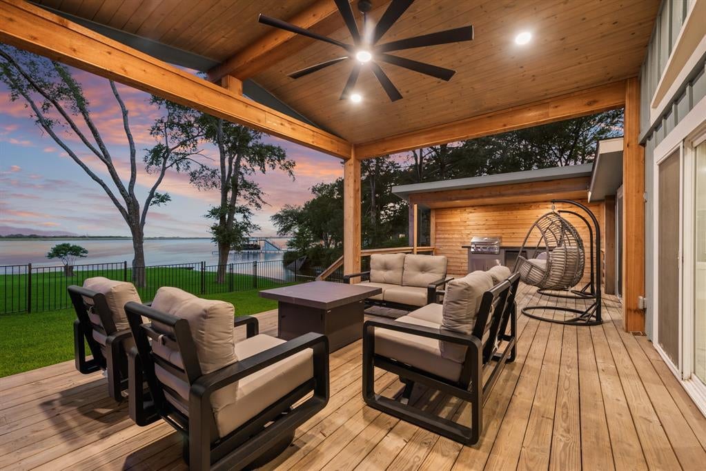 This stunning, 2023 waterfront home on Cedar Creek Lake offers the perfect blend of modern design and lakeside tranquility. With breathtaking views of the lake from the living room and kitchen, the open-concept floor plan features vaulted ceilings, nautical colors, quartz countertops, and shaker-style cabinets, creating a sleek and inviting atmosphere. The third bedroom bunkroom sleeps four, making it ideal for family or guests. Outside, a spacious deck with a vaulted wood ceiling leads to an additional outdoor cooking and entertainment area, while a 1000-gallon propane tank powers cooking, hot water, and a cozy firepit. The expansive yard, lush with Saint Augustine grass, provides plenty of room for outdoor fun, and the property is set back from the main water for added privacy and calmer waters, perfect for peaceful moments by the lake.