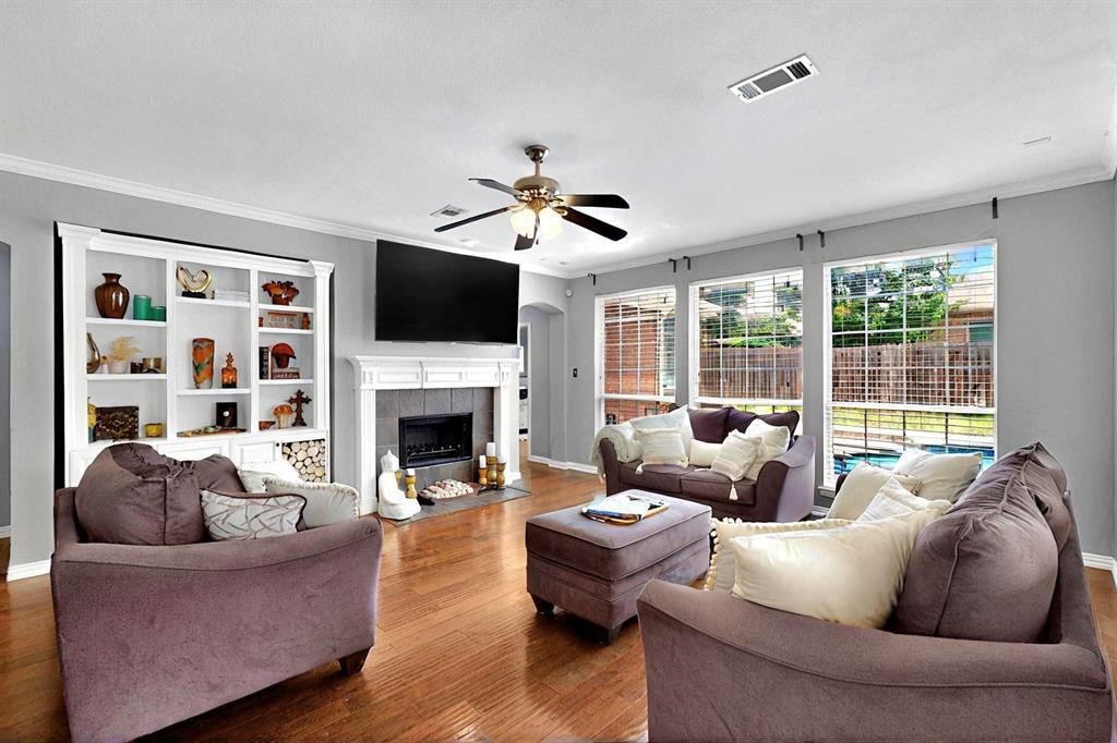 NEW Roof! No HOA! Discover elevated living in this stunning 4-bedroom retreat. With no HOA fees, you're free to enjoy your home your way. Step into a dramatic grand entry that sets the stage for high ceilings and an open, airy layout. The sleek granite kitchen is designed to spark culinary creativity, while the formal dining room brings elegance to every gathering. A BONUS ROOM offers flexibility—perfect as a home office or lounge—while the entertainment space invites cozy movie nights and fun game sessions. The living room features custom built-ins and a fireplace, adding warmth and charm. A tandem garage provides generous storage. The spacious downstairs primary suite overlooks a serene heated pool, offering resort-style privacy. Outside, unwind in a backyard oasis complete with twinkling lights, a jacuzzi, and a wood-barrel sauna. Energy-efficient systems mean luxury doesn’t come with high utility costs. Price just reduced—don’t miss your chance to own this one-of-a-kind home that blends style, comfort, and freedom. The large primary bedroom, located downstairs for privacy, overlooks the serene, heated pool, creating a resort-style ambiance. Step outside to a backyard oasis, where illuminating lights, a jacuzzi along with an outdoor wood-barrel sauna, offer tranquility and entertainment. Reasonable energy costs make luxury living efficient. This home is the perfect blend of elegance and comfort.