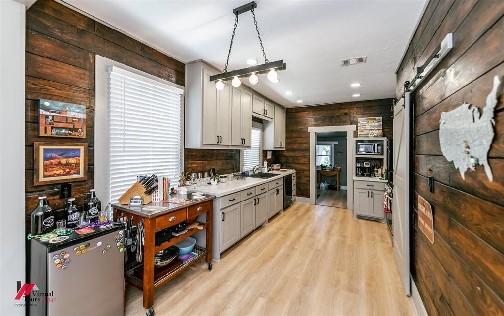 This updated home offers over 1,400 square feet of flexible living space full of charm and possibility. You'll find original hardwood floors in the living room and both bedrooms, paired with new low-maintenance laminate wood in the kitchen and dining areas. Original hardwood floors extend through the living room and both bedrooms, while the kitchen and dining areas feature new, easy-care laminate wood flooring. The living room includes built-in shelving and a gas-starting fireplace, creating a warm and inviting space. A cozy bonus room sits just off the living area and could be used as a home office, reading nook, or creative studio. The kitchen blends style and function with eye catching rustic wood walls, a sliding barn-style door, and plenty of cabinet storage. Appliances—including the refrigerator, stove, microwave, and washer and dryer—are included, making this home truly move-in ready. The adjacent dining area creates a natural flow that makes everyday living and entertaining easy. Both bedrooms offer great natural light and classic charm. The full bathroom includes a clawfoot tub with shower, adding a timeless touch. Outside, the fully fenced backyard includes a private patio and fire pit, perfect for relaxing or entertaining. A shared front driveway leads to your own gated section at the back, where you’ll find private, covered parking under a detached carport. This home has been lovingly cared for and is move-in ready, offering timeless style and modern updates in the heart of Highland.