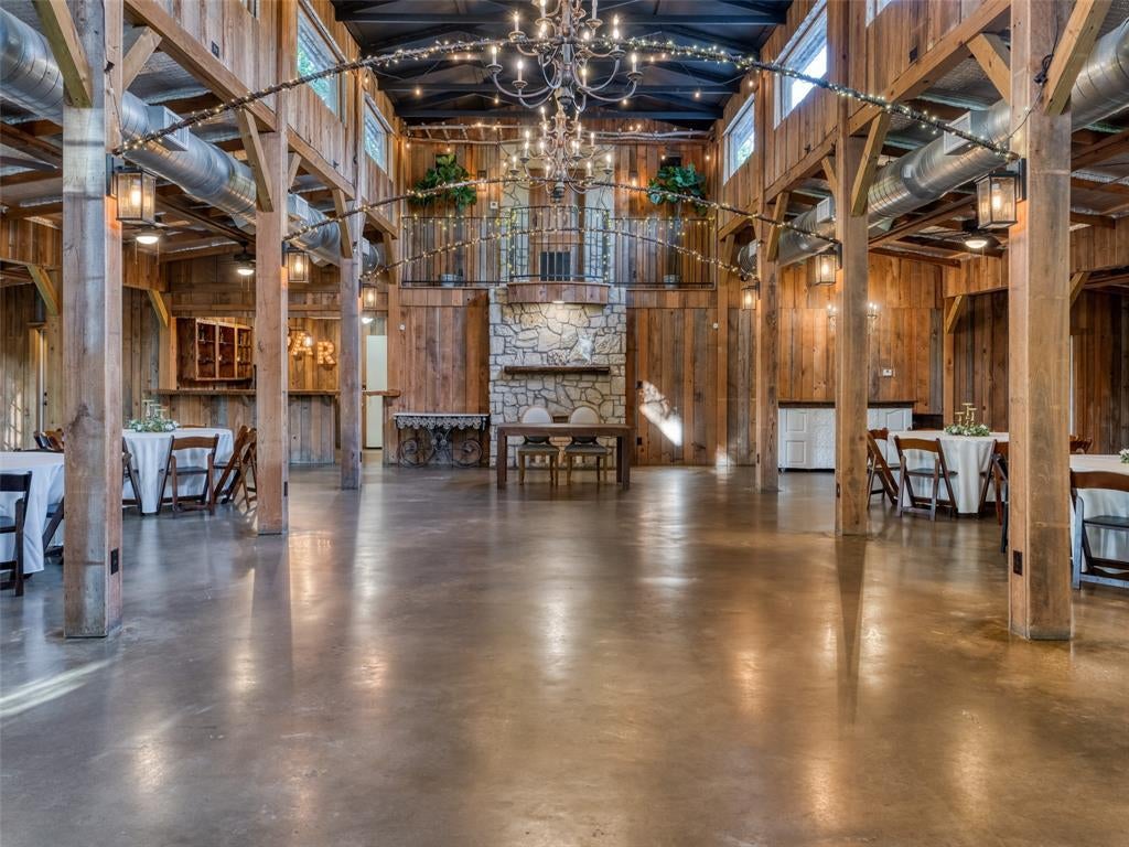 Nestled in a serene grove of oak trees on 7.689 acres, Stone Oak Ranch is a legendary venue in East Texas that has been family-owned and operated since its establishment in 2010. Surrounded by natural beauty, the property’s grounds are meticulously designed to enhance any occasion. As twilight descends, Stone Oak Ranch transforms into a magical oasis under a captivating display of outdoor lights, elegant chandeliers and illuminated trees. At the heart of the venue is a versatile barn-inspired building that spans approximately 4,137 SF, complete with a food-serving area, a bar for beverage service, and a fully equipped catering kitchen. The main structure captivates with its soaring 19-foot ceiling, providing an open and airy ambiance that is ideal for hosting large gatherings or intimate events. The outdoor amenities include extensive flagstone patios and walkways, creating enchanting paths that lead to a picturesque pond with a fountain, a charming outdoor chapel, and a pergola adorned with string lights and a chandelier – a perfect setting for weddings and ceremonies. The venue is further enhanced by a small office building and two ample parking lots for guests, while an additional structure offers dressing rooms and bathrooms for event participants. Approximately 30% of the property remains undeveloped in thick forest, so there is an opportunity for future expansion. Stone Oak Ranch’s location outside the city limits of Murchison opens up opportunities for a myriad of ventures including an expanded venue, a corporate retreat haven, a distinctive restaurant, or a private residence. This property provides an unparalleled canvas to bring your entrepreneurial dreams to life. Contact your real estate agent today to schedule a private tour and explore the endless potential of 10204 CR 3807, Murchison, TX. Seller will need a leaseback through Dec 31, 2025 to complete their scheduled events.