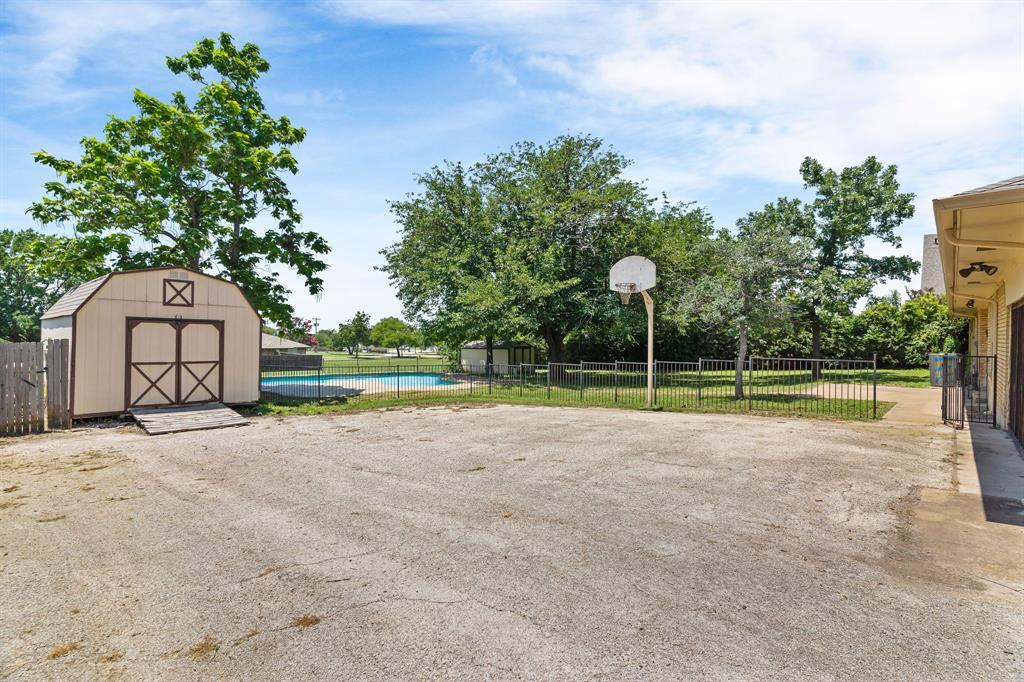 OPEN HOUSE SUNDAY, OCT 26, 1-3PM! Updated, single story home with hand-scraped hard wood floors, built-ins throughout, and an oversized game room, on over ½ an acre lot with a refreshing swimming pool, extended driveway, and no HOA, offering a quiet and slow-paced country lifestyle, yet located in the heart of Prosper, minutes to numerous shops and restaurants. The cozy and inviting living room offers a stunning, floor-to-ceiling gas fireplace, complete with a classic mantel. Host dinner parties in the designated dining room, featuring built-in cabinets with drawers and open shelving—ideal for storing and displaying dinnerware, and a large window offering a serene view of the backyard and pool. The galley kitchen features warm wood floors and crisp white cabinets that create a bright, clean aesthetic. Entertain or relax in the game room, transformed from the original garage space, with wood floors, crown molding, a generous size and versatile layout, this room offers endless possibilities for games, hobbies, or casual hangout space. The spacious primary bedroom offers a peaceful retreat featuring wood floors, a large window, and a generous walk-in closet offering ample storage for wardrobe and accessories. The private en suite primary bathroom includes a vanity with ample drawer storage, a granite countertop with under mount sink, and separate shower. Bedrooms 2, 3, and 4 each offer a generous closet and built-in desk for studying or working remotely. The full bathroom includes a granite countertop, undermount sinks, a shower-tub with tile surround, and large linen closet. The expansive lot, over ½ an acre, lush with mature trees, provides ample shade and a serene setting. A sparkling swimming pool invites relaxation and recreation, while a convenient parking pad offers additional off-street parking and a basketball goal. Whether you're entertaining or enjoying a quiet moment outdoors, this property provides everything you need for a peaceful retreat.