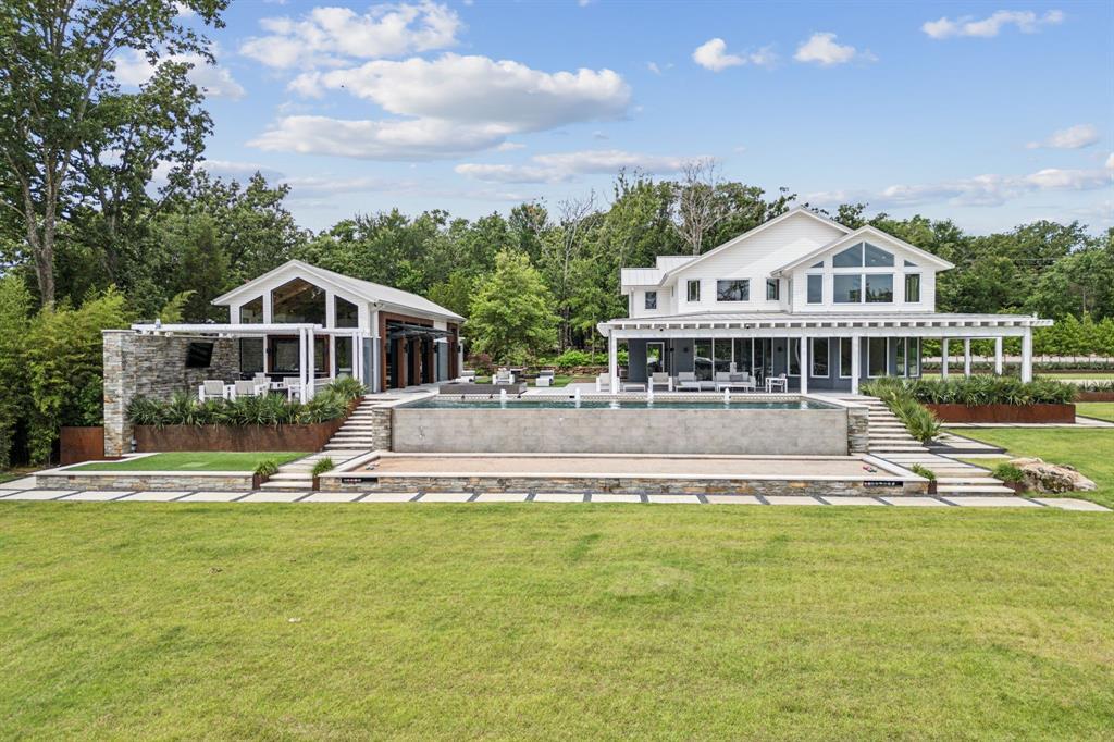 Tucked away on 14 breathtaking acres at Richland Chambers Lake, this one-of-a-kind lake front estate blends global architectural influences with the relaxed elegance of lakeside living. Designed with intention and inspired by travels across the world, the 5-bedroom home is a masterpiece of natural light and thoughtful design, wrapped in walls of windows that frame stunning views of the water and surrounding landscape. Every inch of this property was created to embrace the outdoors and bring a resort-style experience to daily life. The main residence opens seamlessly to an entertainment pavilion that includes kitchen and bar inviting alfresco dining, and a beautiful resort-style pool sets the tone for relaxation. A fully equipped gym with a private outdoor shower and tranquil courtyard offers the perfect wellness escape. For those who love to entertain or stay active, the property features a pickleball court alongside a sports pavilion that includes a spectator area and bar. This space is primed to be outfitted with massage rooms, locker rooms, or whatever vision you imagine. A beautifully designed multi-use building that includes bedroom, full bath, kitchen and a loft which adds flexibility—ideal as an indoor sports facility, spacious guest house, creative studio, or grand bunk house. Down by the water, the two-story boat dock is a dream setup, with room for two boats and two jet skis, plus an upper level perfect for lounging under the Texas sun. Meandering through the property is a charming brook, while a fire pit, bocce ball court, and countless other amenities to create endless opportunities for fun, connection, and serenity. This property isn’t just a home—it’s a private resort, a gathering place, a retreat. Truly one of a kind, and ready to be enjoyed. Information is deemed reliable, Buyer and Buyers agent to verify.