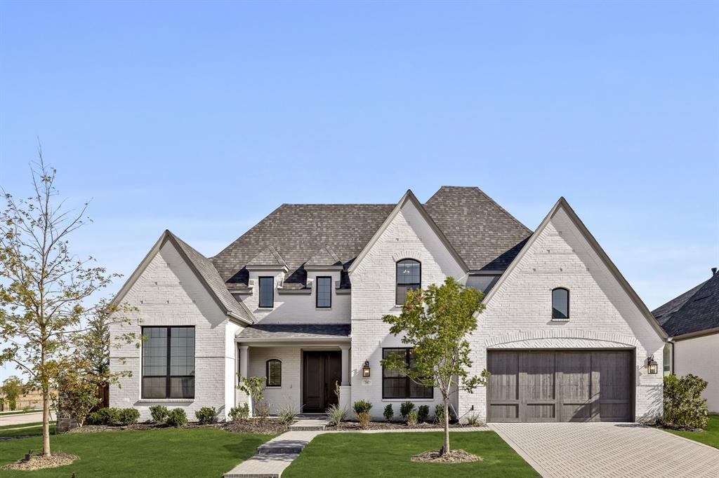 Welcome to 2800 Count Fleet Way in the charming Mustang Lakes neighborhood, part of the well-regarded Prosper ISD! This delightful Highland Homes open floor plan is bathed in natural light, showcasing the soaring ceilings and elegant hardwood floors throughout the main level. Imagine entertaining in the cozy main-floor media room or relaxing in the vaulted family room with its modern fireplace. The gourmet kitchen is a chef's dream, featuring a stunning granite waterfall island, custom cabinetry, and top-of-the-line appliances, including double ovens. The primary suite is a true retreat, complete with a peaceful sitting area, a luxurious bathroom, and a spacious walk-in closet. Just off the primary bedroom, you'll find a handy planning desk, perfect for a home office or study nook. Upstairs, there's plenty of room for fun with both a game room and a playroom. Additional highlights include a custom mud bench, a utility room with cabinets and a sink, upgraded flooring throughout, and a spacious 3-car garage. Don't miss out on this beautifully upgraded home on a desirable corner lot—it’s ready to welcome you home!