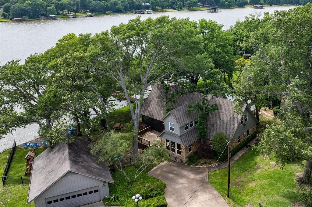 Discover the perfect lakefront getaway in this beautifully renovated home on the shores of Cedar Creek Lake. Nestled among mature trees with panoramic water views, this stunning retreat offers the best of indoor-outdoor living—and the chance to make a lifetime of unforgettable memories. Step inside to a fully updated interior where every detail has been thoughtfully designed. The open-concept main living area boasts vaulted ceilings and a wall of folding doors that open seamlessly to a spacious screened-in patio, bringing the outside in and offering breathtaking sunset views over the water. The heart of the home is a modern kitchen featuring a large center island—ideal for gathering with family and friends. A stylish powder bath and laundry room with convenient outdoor access make lake days effortless.The serene primary suite offers a spa-inspired bath with a soaking tub and a luxurious walk-around shower. Upstairs, two inviting guest bedrooms provide space for family and visitors. Separate from the main house, a private guest suite offers additional comfort with a full bedroom, walk-in shower, and peaceful privacy—perfect for hosting weekend guests or multi-generational stays. Outdoors, enjoy a covered dock ready for your boat and jet skis, shaded by towering trees and perfect for launching a day of lake adventure. The detached garage and generous parking space ensure there's room for everyone. Whether you're sipping coffee on the patio, watching the kids jump off the dock, or winding down with a glass of wine as the sun sets over the water, this lakefront haven is a place where memories are made. **This is more than a home—it's your lakeside sanctuary, just an hour from the city, and a world away from it all.**
