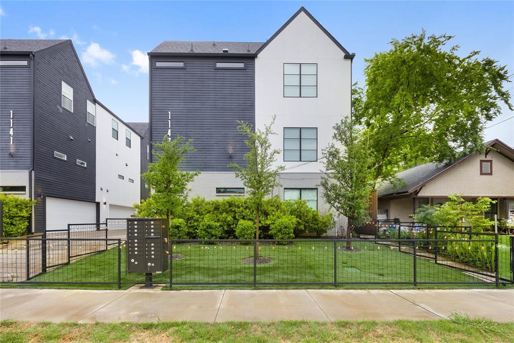 Located just moments from the heart of the Bishop Arts District, downtown Dallas, and major hospitals, this sleek and modern 3-bedroom, 2.5-bathroom townhome offers the perfect blend of style, space, and convenience. Spread across three thoughtfully designed levels, this home features a contemporary layout with high-end finishes throughout. On the main floor, enjoy a bright open-concept living and dining area paired with a stunning chef’s kitchen. Highlights include waterfall-edge marble countertops, flat-panel cabinetry, a gas cooktop with stainless steel vent hood, and a walk-in pantry. Pendant lights over the island add a touch of elegance to this functional and beautiful space. Upstairs, the third-floor bedrooms boast dramatic vaulted ceilings, creating a sense of openness and airiness. The primary suite includes a spa-inspired bath with a frameless glass walk-in shower, dual sinks with quartz countertops, and matte black fixtures. A spacious walk-in closet with built-in shelving offers ample storage. Outside, enjoy the benefits of a fenced and landscaped front yard, gated entry, and private community mailboxes. The townhome's bold modern architecture, with contrasting dark siding and light brick accents, adds striking curb appeal. Whether you're looking for your next home or an investment in a rapidly growing area, this townhome delivers sophisticated urban living in one of Dallas’ most desirable locations.