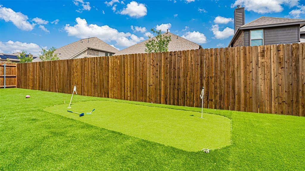 Retreat to the lux primary ste w a spa-inspired bath, soaking tub, oversized walk-in shower, & generous closet. Outside, your private oasis awaits, w low-maint turf, a covered patio, & even a putting green for family fun.