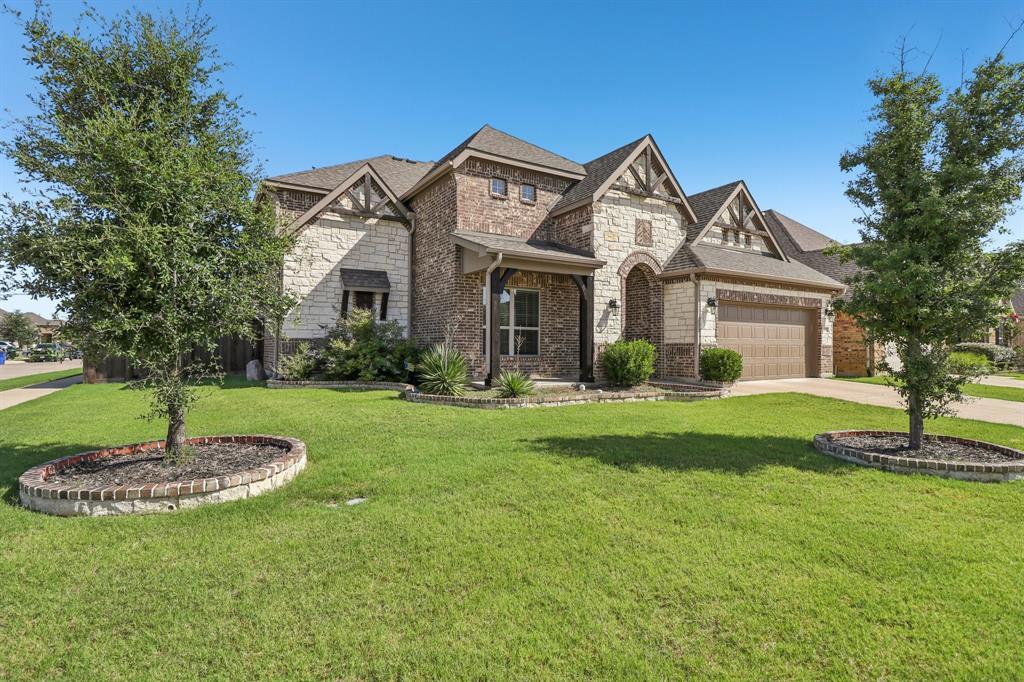 This beautifully maintained two-story residence offers 4 bedrooms and 3 full bathrooms, located in the desirable Somerset addition within Mansfield ISD. Enjoy an elegant main-level layout that includes a luxurious primary suite, a flexible office or fourth bedroom, a full guest bath, a formal dining room, and a warm family room anchored by a stunning stacked stone gas fireplace. The gourmet kitchen is a standout feature, showcasing a large island with a modern farmhouse sink, gas cooktop, double ovens, and a seamless view into the living area.