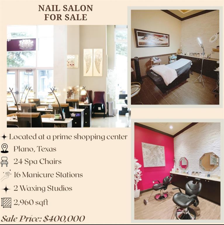 High-End Venetian Nail Spa – Roma Style Located in the prestigious Legacy West, this upscale Venetian Nail Spa—a well-known and respected franchise—combines Roma-inspired interior design with modern functionality. Featuring 24 spa chairs, 16 manicure stations, and 2 private waxing rooms, it’s built to impress and designed for high client volume. Surrounded by luxury retail and dining, this turnkey salon offers both elegance and exceptional revenue potential.