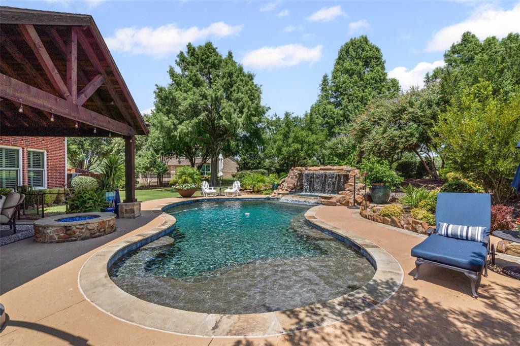 Welcome to 2708 Dublin Park Drive in Parker, Texas. This is an exquisite 3,971 SF custom home on a beautifully landscaped 1-acre lot in the coveted Dublin Park neighborhood. With thoughtful design and high-end finishes, this residence blends luxury, comfort, and functionality. The inviting brick exterior and wrap-around porch set the tone for the elegance within. Inside, formal living and dining spaces greet you with soaring ceilings and a grand staircase leading upstairs, where you’ll find three bedrooms, one en-suite and two joined by a Jack-and-Jill bath, plus a large game room. The heart of the home is the chef’s kitchen featuring a large island, double ovens, a gas cooktop with brick surround, a built-in microwave, quartz counters and backsplash with a granite island, and a spacious dining area. The main-level primary suite is a private retreat with its own fireplace and backyard access. The newly renovated spa-like bath boasts marble floors, dual vanities, a huge walk-in shower with multiple heads, including a rain shower, and a soaking tub with a ceiling-mounted faucet. A custom California Closet adds luxury and functionality. The serene backyard boasts a deep pool (perfect for scuba training), a grotto spa, and waterfall. Owner-curated landscaping surrounds the home with tranquil, resort-style beauty. The covered patio includes an outdoor kitchen, fireplace, TV, grill, and sink, perfect for entertaining or unwinding. Festive string lights on the back patio of the main house twinkle in the evenings and create an atmosphere of warmth and relaxation. A charming guest house offers over 850 square feet of full privacy with its own kitchen, living area, bedroom, bath, laundry, and its own porch. Additional highlights include Andersen replacement windows and panoramic sliding patio doors, infrared patio heaters and more. Designed for both entertaining and peaceful living, this exceptional property is a true retreat.