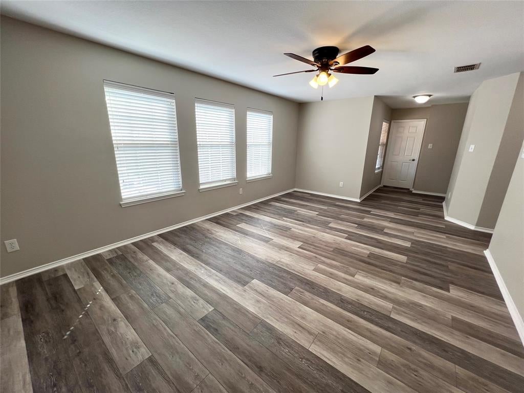 Don't miss out on this charming spacious home! Features 4 beds, 2.5 baths, 2 living and dining areas! Neutral color paint and gorgeous wood colored laminate floorings throughout! Large covered patio and pool great for entertaining! Ton of kitchen cabinets and separate utility room! Quick commute to food, schools, and entertainment! A must see, schedule a tour today! A $195 monthly pool maintenance fee will be added to the rent each month.