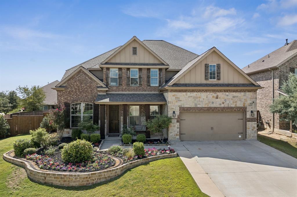 The backyard is a must see, it is even more stunning in person! Original owner and meticulously maintained, this stunning Trinity Falls home offers thoughtful design and modern luxury at every turn. Gently lived in, this is one you won't want to miss! Enter the residence to find a spacious dedicated study with a large walk-in closet, perfect for a home office or flex space, and a formal dining area that connects to the butler pantry and kitchen. The chef’s kitchen is a showstopper with a professional 5-burner Thermador cooktop, high efficiency vent hood, double ovens, granite countertops, stainless steel appliances, and a butler’s pantry complete with wine fridge. The open-concept family room boasts soaring two-story ceilings, walls of windows flooding the space with natural light, and a custom floor-to-ceiling stone fireplace. The primary suite is conveniently located downstairs and tucked away for added privacy. Enjoy his and her closets! Upstairs, enjoy a large, double game room, three oversized bedrooms with walk-in closets, and two full baths, including a Jack-and-Jill. A massive walk-out attic provides abundant storage for seasonal items. Step outside to one of the largest lots in the community, designed for easy living and endless entertaining. The backyard is a retreat with full turf, two pergolas wired with electric, a custom fire pit on a third stamped concrete pad, and peaceful sounds of your very own babbling brook. Two expansive terraces offer plenty of room for games, gatherings, or quiet evenings under the stars. The artificial turf has a four layer underlayment that is designed for quick drainage and dry feet or paws in under 2 hours. Additional highlights include an electric car charger and prime location within Trinity Falls. This home truly combines function, beauty, and comfort—inside and out. ~VETERANS~assumable VA loan at 3.25%! Video tour is available, request from listing agent.